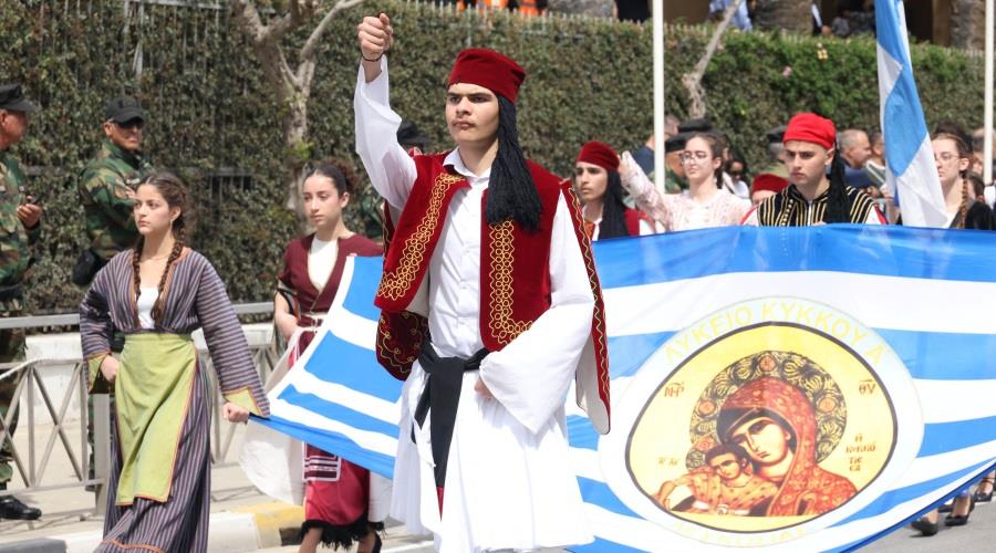 Το παρόν τους έδωσαν στην μαθητική παρέλαση στη Λευκωσία αρχηγοί και στελέχη των κομμάτων για να γιορτάσουν την επέτειο της Ελληνικής Επανάστασης της 25ης Μαρτίου 1821.