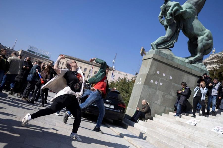 Οι καθημερινές διαμαρτυρίες υπό την πρωτοβουλία φοιτητών έχουν εξαπλωθεί τους τελευταίους τέσσερις μήνες στο μεγαλύτερο μέρος της χώρας, μετά την κατάρρευση μιας στέγης σε πρόσφατα ανακαινισμένο σιδηροδρομικό σταθμό στο Νόβι Σαντ, τη δεύτερη μεγαλύτερη πόλη της Σερβίας, κατά την οποία σκοτώθηκαν 15 άνθρωποι.