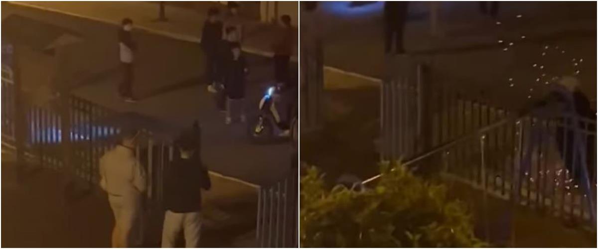 Στο βίντεο, φαίνεται η παρέα των παιδιών να βρίσκεται στον συνοικισμό του Πόρου και συγκεκριμένα στην παιδική χαρά. Την ώρα που περνά η 85χρονη, δύο ανήλικοι ανάβουν και πετούν βαρελότα στα πόδια της γυναίκας.