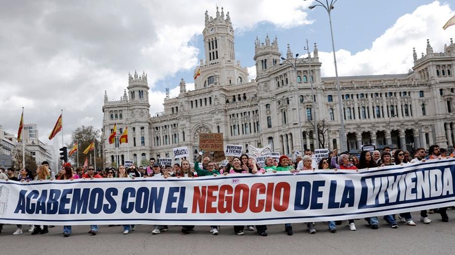 «Ανεξάρτητα από το ποιος βρίσκεται στην κυβέρνηση, πρέπει να υπερασπιστούμε τα δικαιώματα στη στέγαση», φώναζαν διαδηλωτές στη Μαδρίτη, όπου περισσότεροι από 150.000 άτομα πραγματοποίησαν πορεία στο κέντρο της πρωτεύουσας, σύμφωνα με το τοπικό συνδικάτο ενοικιαστών.