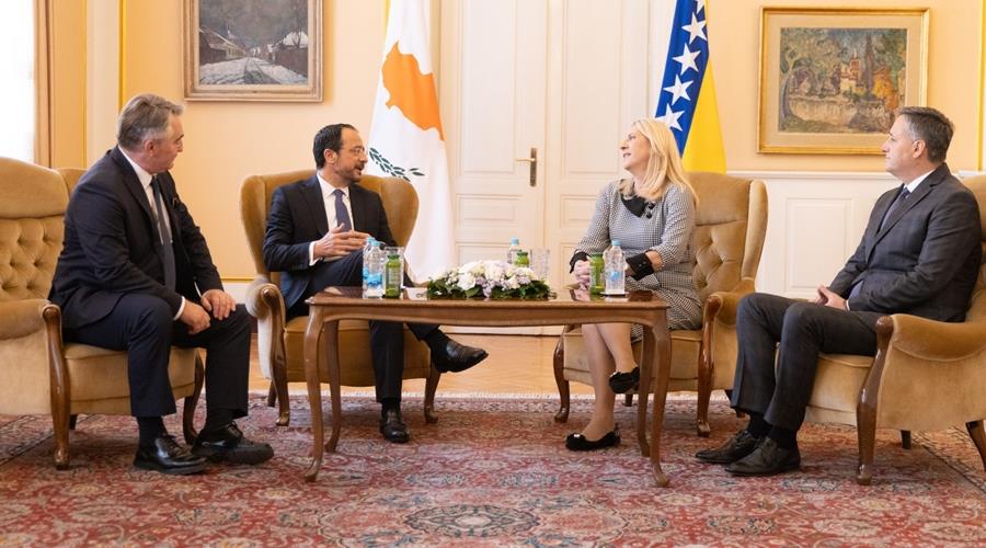 Ο Πρόεδρος της Δημοκρατίας κ. Νίκος Χριστοδουλίδης πραγματοποίησε κατ’ ιδίαν συνάντηση με την Προεδρεύουσα κα Ζέλικα Ζβιγιάνοβιτς και τα άλλα μέλη της Προεδρίας της Βοσνίας και Ερζεγοβίνης, Ζέλκο Κόμσικ και Ντένις Μπεσίροβιτς.