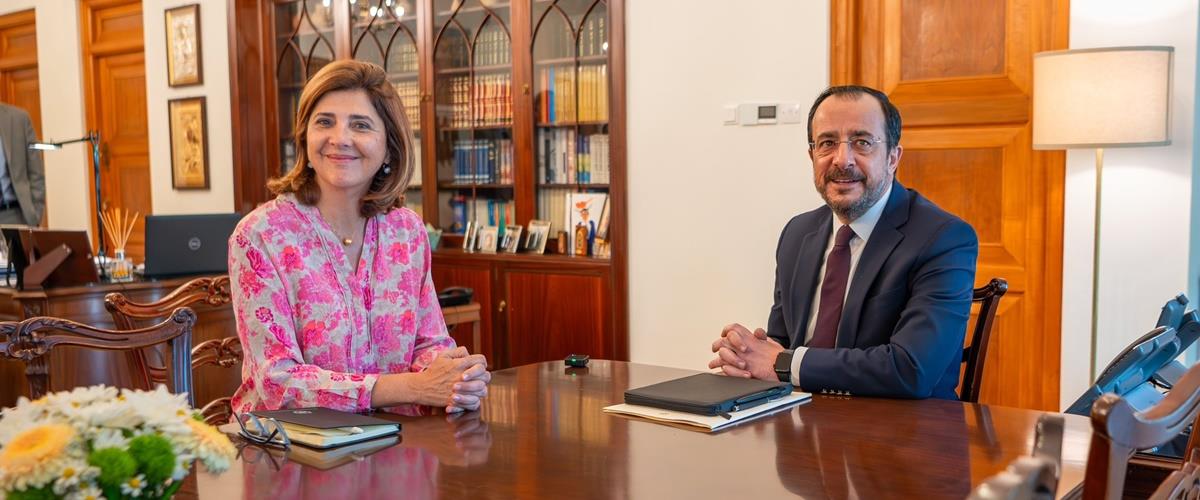 Ο Πρόεδρος της Δημοκρατίας κ. Νίκος Χριστοδουλίδης δέχθηκε σήμερα, στο Προεδρικό Μέγαρο, την προσωπική απεσταλμένη του ΓΓ των ΗΕ για το Κυπριακό κα Μαρία Άνχελα Ολγκίν.