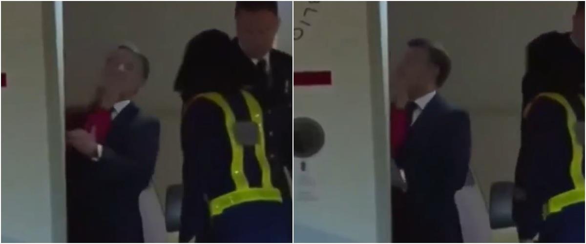 Στο βίντεο που έχει γίνει viral, η Μπριζίτ Μακρόν φαίνεται να χτυπά τον σύζυγό της στο πρόσωπο πριν αυτός κατέβει από το προεδρικό αεροσκάφος αργά το βράδυ της Κυριακής, με αποτέλεσμα να κάνει ένα βήμα πίσω πριν ανακτήσει την ισορροπία του και χαιρετήσει τις κάμερες στο διάδρομο προσγείωσης.
