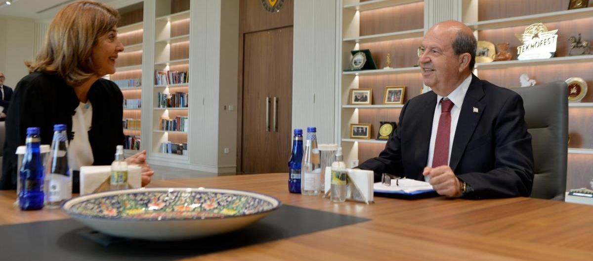 Σε δηλώσεις της μετά τη σημερινή συνάντησή της στα κατεχόμενα με τον Τουρκοκύπριο ηγέτη Ερσίν Τατάρ, είπε ότι είχαν «μια πολύ καλή συνάντηση» όπου συνέχισαν την δουλειά τους ενόψει της συνάντησης τον Ιούλιο, ώστε να έχει αποτελέσματα. «Οπότε είμαι πραγματικά χαρούμενη και ευχαριστημένη. Είχα επίσης πολύ καλές συναντήσεις αυτήν την εβδομάδα με τις [Τεχνικές] Επιτροπές. Χθες ήμουν πραγματικά πολύ χαρούμενη με την Επιτροπή Νεολαίας. Νομίζω ότι είναι ένα πολύ καλό μονοπάτι προς το μέλλον, με ανθρώπους πολύ χαρούμενους που είναι μαζί και δουλεύουν μαζί, και πιστεύω ότι αυτό είναι ένα από τα αποτελέσματα της συνάντησης του Μαΐου στη Γενεύη».