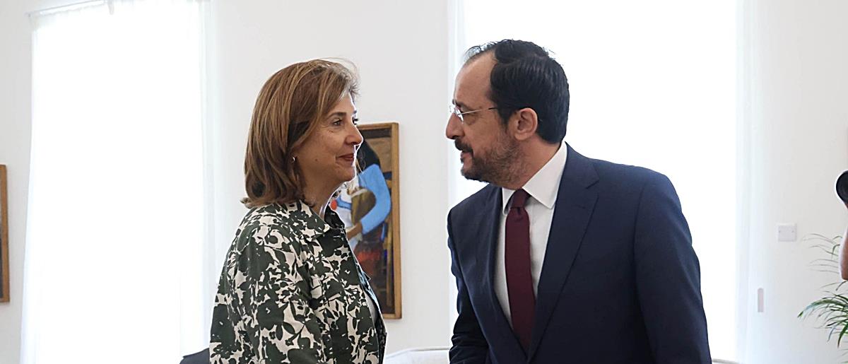 Ολοκληρώθηκε η συνάντηση του Προέδρου της Δημοκρατίας, Νίκου Χριστοδουλίδη, με την προσωπική απεσταλμένη του ΓΓ των ΗΕ για το Κυπριακό, Μαρία Άνχελα Ολγκίν, στο Προεδρικό Μέγαρο, με τον Κυβερνητικό Εκπρόσωπο να δηλώνει πως από πλευράς μας ο Πρόεδρος της Δημοκρατίας έχει υποβάλει μια σειρά από προτάσεις και έχει διαρκώς αποδείξει τη θέληση και τη βούληση μας, για να πραγματοποιηθεί διάλογος με ειλικρινή πολιτική βούληση.