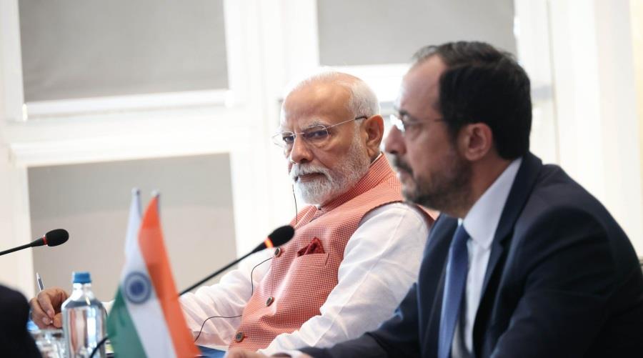 O Πρωθυπουργός της Ινδίας κ. Ναρέντρα Μόντι, ο οποίος έφτασε σήμερα στην Κύπρο για επίσημη επίσκεψη, παρέστη και μίλησε το απόγευμα στη συζήτηση στρογγυλής τραπέζης με επιχειρηματίες από την Κύπρο και την Ινδία που διοργάνωσε στη Λεμεσό το ΚΕΒΕ και το Invest Cyprus, με τη συμμετοχή και του Προέδρου της Δημοκρατίας κ. Νίκου Χριστοδουλίδη.