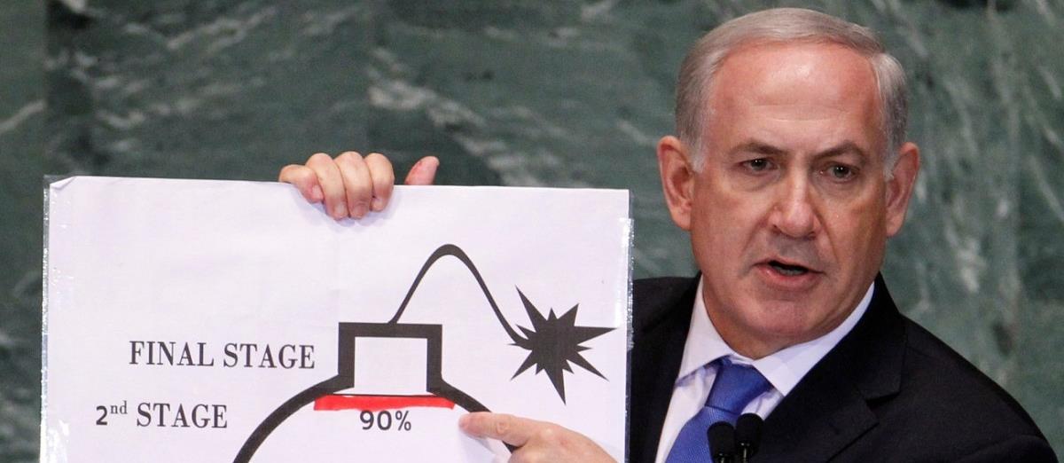 Ήταν το μακρινό 2012, όταν ο Μπενιαμίν Νετανιάχου -και τότε πρωθυπουργός του Ισραήλ- εμφανίστηκε στο βήμα της Γενικής Συνέλευσης του ΟΗΕ με ένα σχεδιάγραμμα, που πολλοί χαρακτήρισαν «καρτούν», προσπαθώντας να πείσει τη διεθνή κοινότητα (και δη τη Δύση) για την απειλή από το πυρηνικό πρόγραμμα του Ιράν.