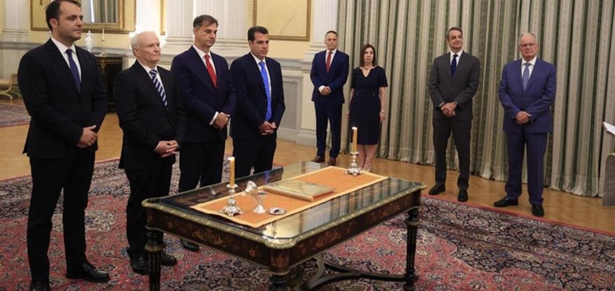 Ενώπιον του Προέδρου της Ελληνικής Δημοκρατίας, Κωνσταντίνου Τασούλα και παρουσία του Έλληνα Πρωθυπουργού Κυριάκου Μητσοτάκη, ορκίστηκαν από τον αρχιγραμματέα της Ιεράς Συνόδου αρχιμανδρίτη Ιωάννη Καραμούζη τα νέα μέλη της ελληνικής Κυβέρνησης.
