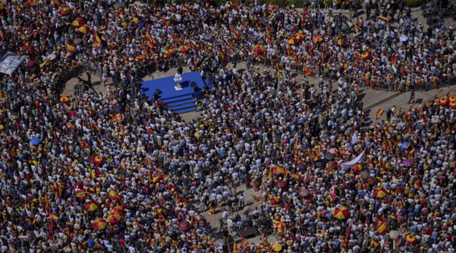 Οι διαδηλωτές, πολλοί από τους οποίους ανέμιζαν ισπανικές σημαίες, συγκεντρώθηκαν στην Πλάθα ντε Εσπάνια, στο κέντρο της πρωτεύουσας, και φώναξαν “Πέδρο Σάντσεθ, παραιτήσου!” καταγγέλλοντας παράλληλα την κυβέρνησή του.