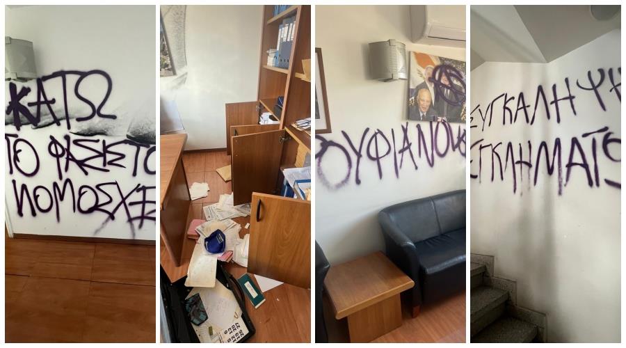 Επίσης, βανδαλίστηκαν τα γραφεία του κόμματος, με ζημιές σε διάφορους χώρους. Στο σημείο μετέβησαν μέλη της Αστυνομίας, τα οποία διενεργούν εξετάσεις, για να διαπιστώσουν κατά πόσον οι δράστες άφησαν πίσω τους οποιαδήποτε στοιχεία που μπορούν οι Αρχές να τους ταυτοποιήσουν.
