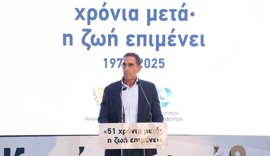 Ο Υπουργός Εσωτερικών είπε ακόμα ότι φέτος συμπληρώνονται 51 χρόνια από τη μαύρη επέτειο της τουρκικής εισβολής, 51 χρόνια κατοχής, προσφυγιάς και διαίρεσης, με 51 χρόνια την Αμμόχωστο "να μάς προσμένει με τα παράθυρα κλειστά".