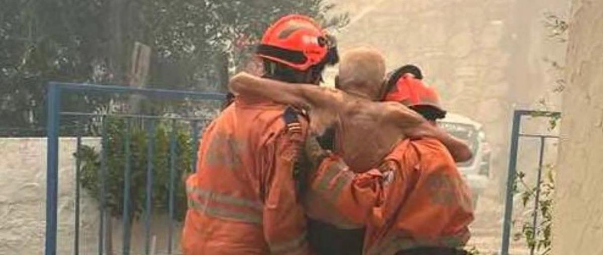 «Ο παππούς που έγινε παππούς μας. Στην φωτογραφία εθελοντές της Πολιτικής Άμυνας μεταφέρουν ηλικιωμένο κάτοικο πληγείσας κοινότητας που αδυνατούσε να μετακινηθεί μόνος του ενώ ταυτόχρονα επιχειρούσαν κατάσβεση της φωτιάς που τον είχε περικυκλώσει. Ευχαριστούμε τους εθελοντές της Πολιτικής Άμυνας για τις υπεράνθρωπες και αλτρουιστικές προσπάθειες σας», αναφέρει σε ανάρτηση της η Πολιτική Άμυνα.