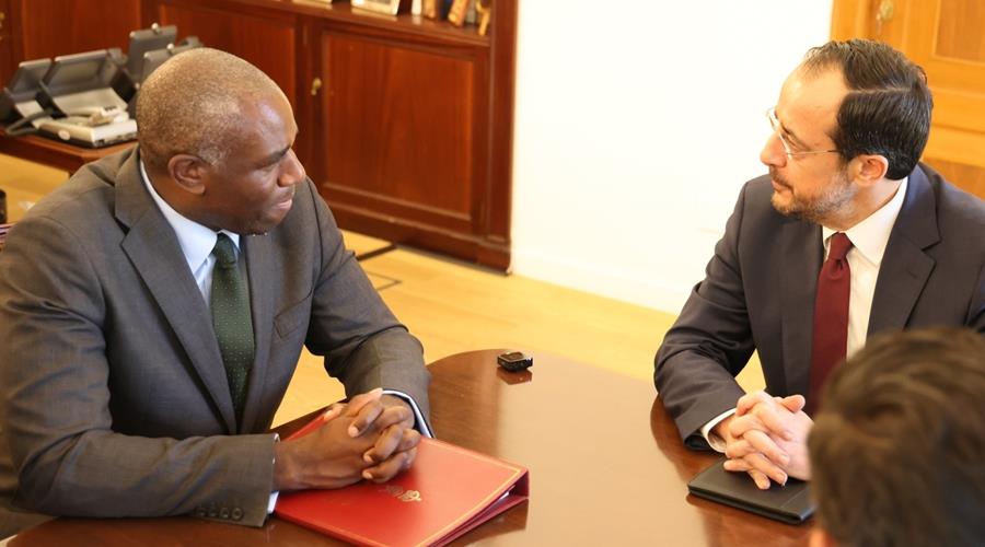 Ο Πρόεδρος της Δημοκρατίας κ. Νίκος Χριστοδουλίδης δέχθηκε σήμερα, το απόγευμα, στο Προεδρικό Μέγαρο, τον Υπουργό Εξωτερικών του Ηνωμένου Βασιλείου κ. Ντέιβιντ Λάμι, στην παρουσία, ανάμεσα σε άλλους, του Υπουργού Εξωτερικών κ. Κωνσταντίνου Κόμπου και του Κυβερνητικού Εκπροσώπου κ. Κωνσταντίνου Λετυμπιώτη.