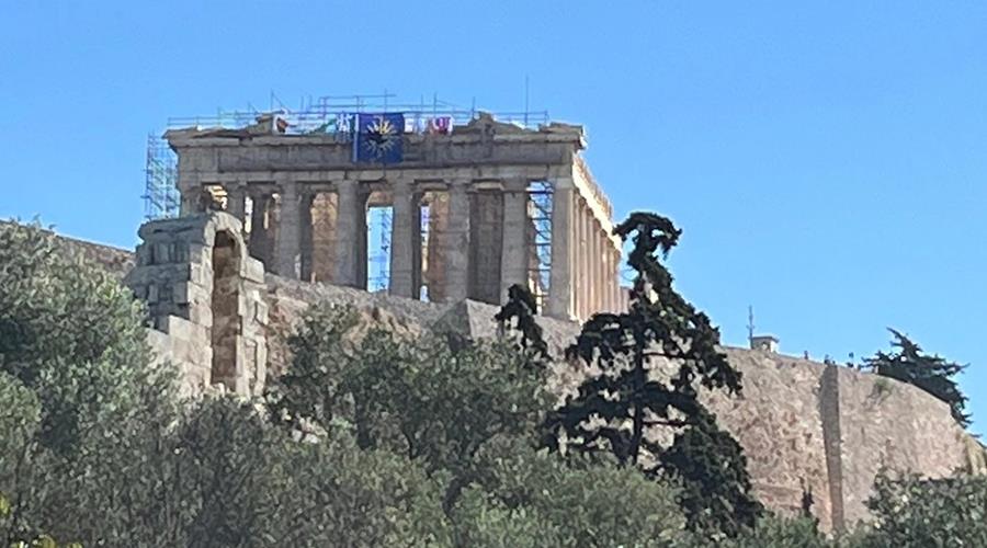 Ένα πρωτόγνωρο επεισόδιο βρίσκεται σε εξέλιξη στην Ακρόπολη, καθώς ένας άνδρας διέφυγε της προσοχής των φυλάκων και σκαρφάλωσε στον Παρθενώνα, με σκοπό να κρεμάσει σημαίες του Ισραήλ, της Ελλάδας, της Νέας Δημοκρατίας αλλά και το αστέρι της Βεργίνας.