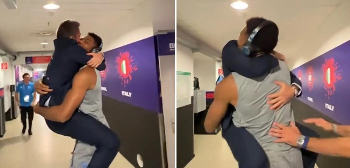 Ο Τζιανμάρκο Ποτζέκο μετά τη λήξη του αγώνα της Ιταλίας με τη Σερβία που έληξε με την τεράστια νίκη των «ατζούρι» συνάντησε τον Γιάννη Αντετοκούνμπο στο διάδρομο των αποδυτήριων και χωρίς να το σκεφτεί δεύτερη φορά, πήδηξε και έπεσε στην αγκαλιά του Greek Freak για να πανηγυρίσει την «βόμβα» που έριξαν οι παίχτες του στο Eurobasket 2022.