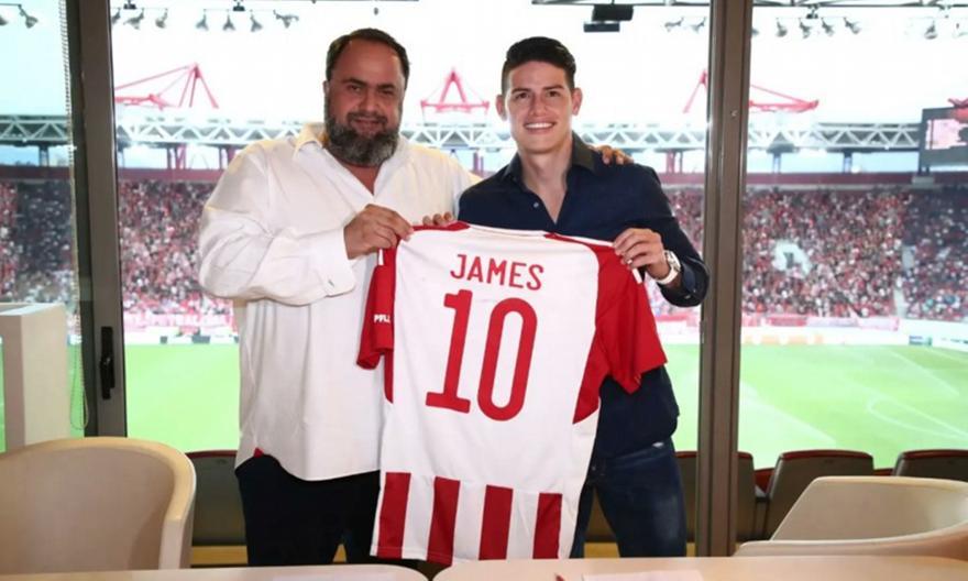 This is how we welcomed @jamesdrodriguez last night in “G. Karaiskakis” stadium! Welcome to the #Olympiacos' family! / Έτσι υποδεχθήκαμε χθες στο Γ. Καραϊσκάκης τον Χάμες Ροντρίγκες! Καλωσόρισες στην οικογένεια του Ολυμπιακού! 🔴⚪️#JamesRodriguez #WelcomeJames #JR10 #Marinakis pic.twitter.com/qkxvfvl1H8