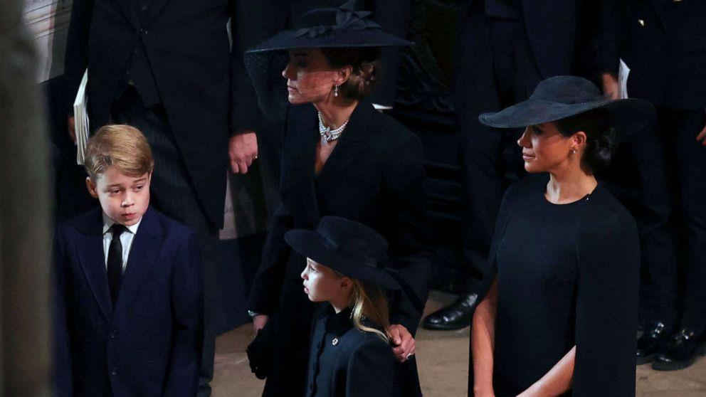 Κατά τη διάρκεια της λειτουργίας στο Γουέστμινστερ, τα δισέγγονα της Βασίλισσας -χωρίς τον μικρότερο αδερφό τους τον Λούις που δεν παρευρέθηκε στην κηδεία – φάνηκαν να αντιλαμβάνονται τη σημασία της ημέρας παρά το νεαρό της ηλικίας τους. Λίγο μετά η μικρή Σάρλοτ ξέσπασε σε λυγμούς στην αψίδα του Ουέλινγκτον.