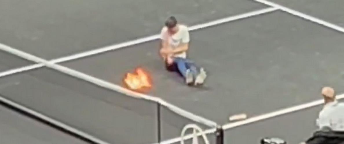 Απίστευτο και όμως πέρα για πέρα αληθινό, βγαλμένο από το Laver Cup. Κατά τη διάρκεια της αναμέτρησης του Στέφανου Τσιτσιπά με τον Ντιέγκο Σβάρτσμαν, ένας θεατής άφησε τη θέση του στις εξέδρες και εισέβαλε στο κορτ, για να βάλει φωτιά στο χέρι του και και να προκαλέσει προσωρινή διακοπή στην αναμέτρηση, πριν απομακρυνθεί από τους άνδρες ασφαλείας του γηπέδου.