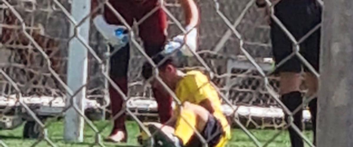 «Ένας από τους πολλούς νεαρούς ποδοσφαιριστές που κατέρρευσαν σήμερα από θερμική εξάντληση αφού οι θερμοκρασίες η ωρα 11.00 και 12.00 που όρισαν τα παιχνίδια ακουμπούσαν τους 39 βαθμούς. Υπόψιν βάση επιστημονικων μελετών σε πλαστικά γήπεδα προσθέτουμε +8 με 10 βαθμούς ποιο πάνω.