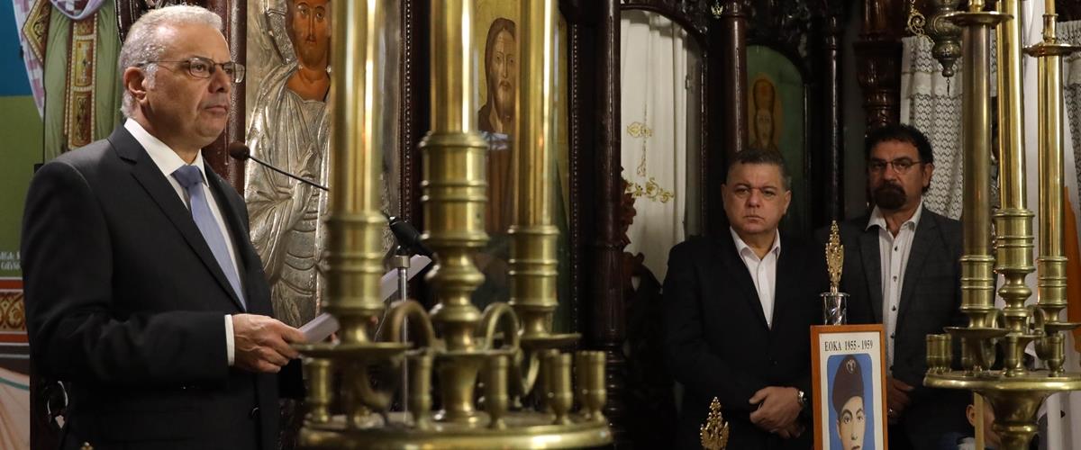 Οι αναφορές του Υπουργού Εσωτερικών στις τελευταίες εξελίξεις μετά τις νέες προκλητικές ενέργειες της Τουρκίας, έγιναν κατά τον επιμνημόσυνο του λόγο στο εθνικό μνημόσυνο του ήρωα του απελευθερωτικού αγώνα 55-59’ Παναγιώτη Τουμάζου, που τελέστηκε στο Ιερό Ναό Αγίας Παρασκευής, στην Επισκοπή Λεμεσού.