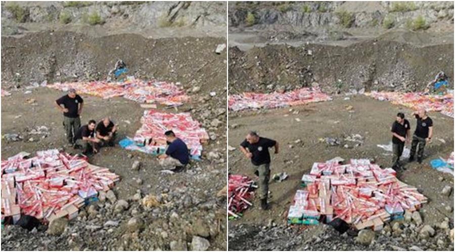 Βίντεο και φωτογραφίες από τη χθεσινή καταστροφή πυροτεχνημάτων, 1,5 τόνου, περίπου, στο λατομείο Σκύρα Βάσας, στο Μοναγρούλλι, έδωσε στη δημοσιότητα η Αστυνομία.