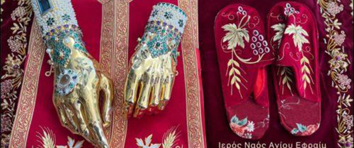 Την ίδια μέρα εκτέθηκε σε προσκύνημα τεμάχιο εκ του ιερού λειψάνου του Αγίου Εφραίμ του Μεγαλομάρτυρος και Θαυματουργού, το ιερό Πετραχήλι του και οι ιερές εμβάδες του, τα οποία τοποθετήθηκαν στην Ιερά Λάρνακα του Αγίου.