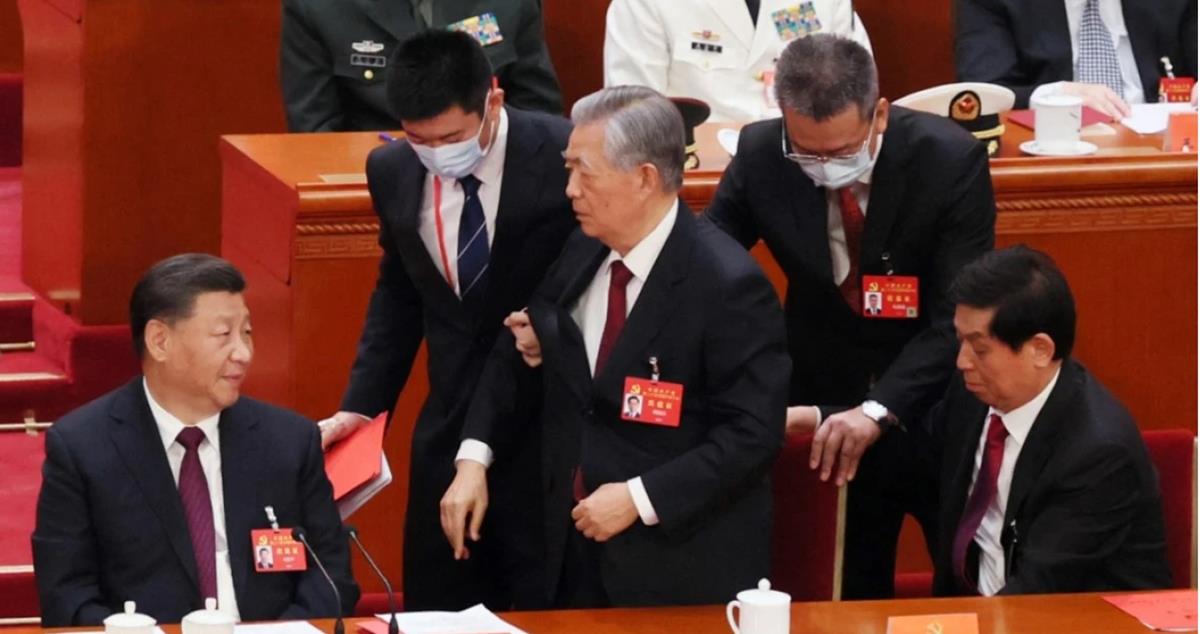 Η παράξενη σκηνή της απομάκρυνσης του προκατόχου του Σι Τζινπίνγκ από την τεράστια αίθουσα στο Παλάτι του Λαού, το τεράστιο κτίριο σοβιετικού στιλ που δεσπόζει στην πλατεία Τιενανμέν, έκανε τον γύρο του διαδικτύου το προηγούμενο Σάββατο, προκαλώντας πολλά ερωτηματικά. Στο κλιπ που κυκλοφόρησε αμέσως μετά το περιστατικό, ένας υπάλληλος εμφανίζεται να πλησιάζει τον πρώην ηγέτη της Κίνας, ο οποίος κάθεται δίπλα ακριβώς από τον Σι Τζινπίνγκ, και να επιχειρεί να τον σηκώσει από τη θέση του, εμφανώς παρά τη θέλησή του. Ο Χου Τζιντάο σηκώνεται τελικά απρόθυμα, λέει μερικές κουβέντες στον Σι Τζινπίνγκ, που απλώς του νεύει, και αγγίζει στον ώμο τον προστατευόμενό του και απερχόμενο πρωθυπουργό της Κίνας, Λι Κεκιάνγκ, προτού οδηγηθεί έξω από την αίθουσα.