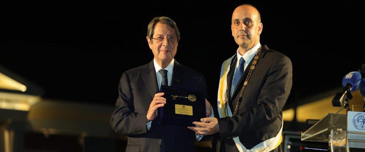 Ο Πρόεδρος Αναστασιάδης ανέφερε πως η απόφαση να του απονείμουν το Χρυσό Κλειδί της πόλης τον τιμά και τον συγκινεί βαθύτατα.