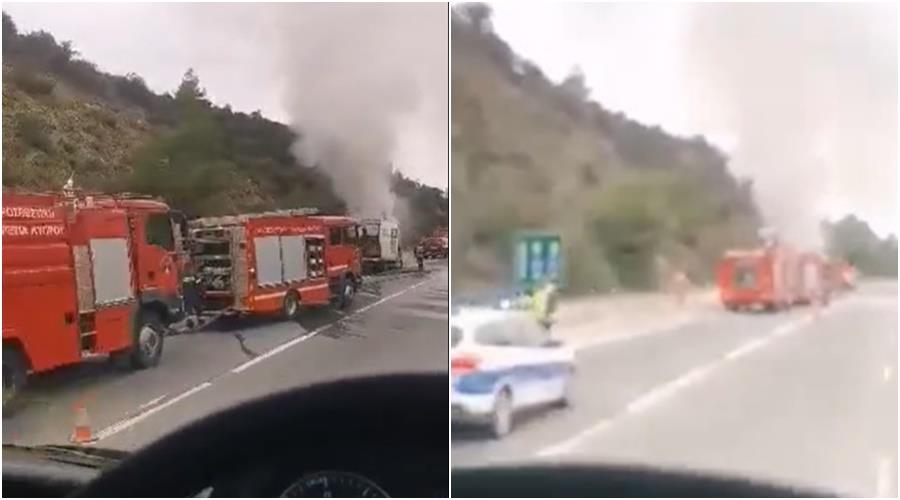 ΒΙΝΤΕΟ: Στις φλόγες φορτηγό όχημα στον αυτοκινητόδρομο