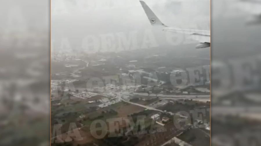 Το αεροσκάφος ήταν προγραμματισμένο να προσγειωθεί στις 13:15, όμως εξαιτίας της έντονης βροχόπτωσης και των ανέμων ο πιλότος αναγκάστηκε να κάνει τρεις κύκλους πάνω από τον αττικό ουρανό.