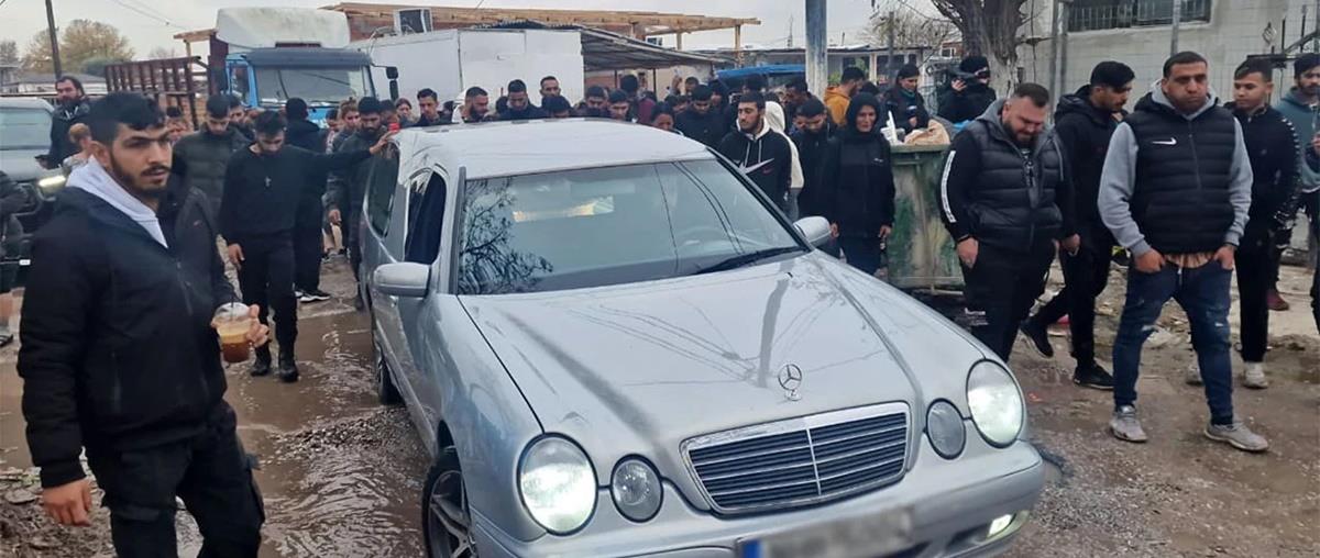 Με δυνατή μουσική, εκατοντάδες ανθρώπους και δεκάδες οχήματα συνοδεία, έφτασε η νεκροφόρα που μεταφέρει το φέρετρο στον οικισμό. Κατά τη μεταφορά της σορού στο σπίτι ο κόσμος ξέσπασε σε χειροκροτήματα, με το κλίμα να είναι ιδιαίτερα βαρύ και να ακούγονται συνεχώς κραυγές.