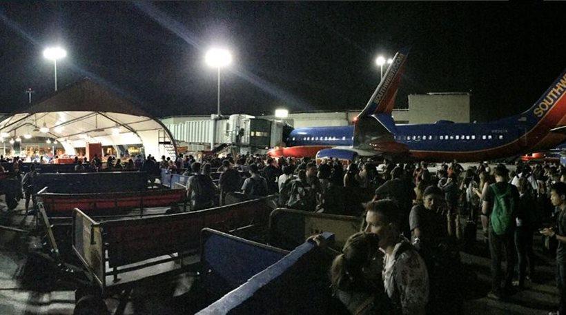 Οι αστυνομικοί έκλεισαν τις ζώνες αναχωρήσεων κι αφίξεων στο κεντρικό συγκρότημα του αεροδρομίου.