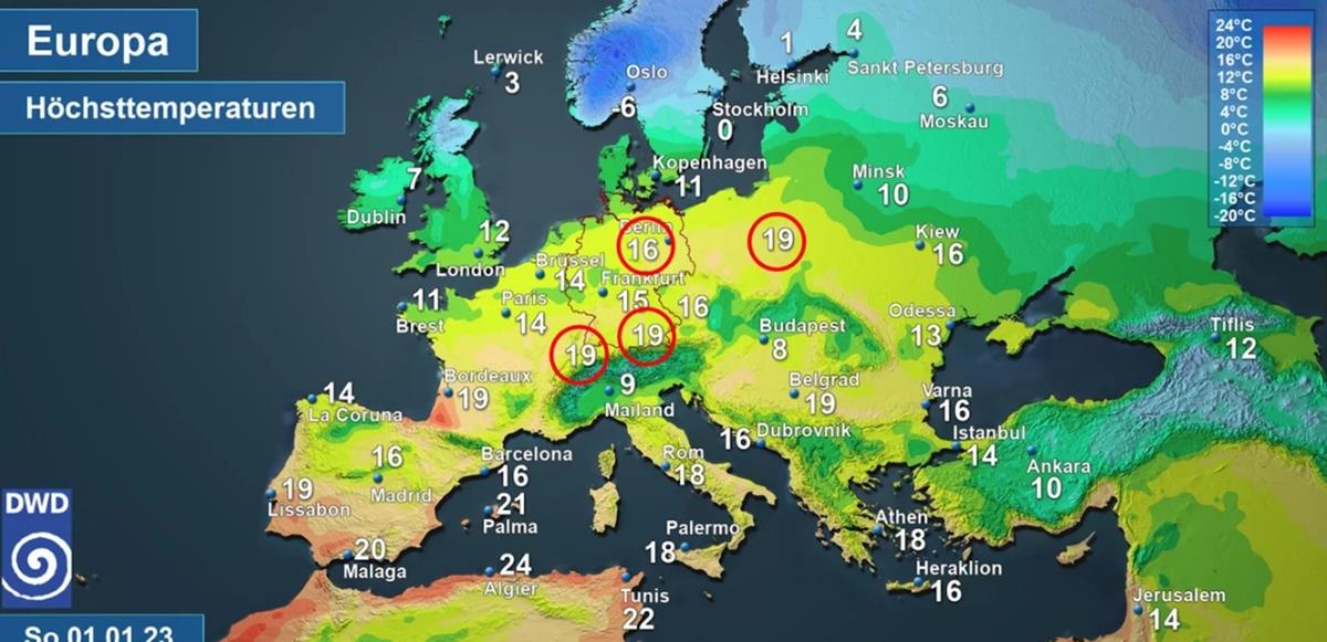 Zahlreiche Januarrekorde bezüglich der Höchsttemperaturen nicht nur bei uns, sondern auch in unseren Nachbarländern (rot umrandete sind bereits bestätigt). In Warschau wurde der alte #Rekord um mehr als 5 Grad überboten! /V#Temperatur #Januar pic.twitter.com/0NrRFI0nQv