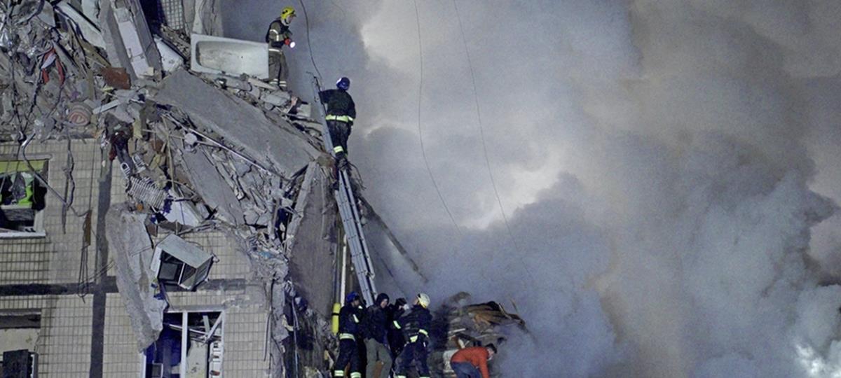 Rescue workers sifted through rubble, searching for signs of life at an apartment block in the Ukrainian city of Dnipro, which was hit as part of a major Russian missile attack that killed at least twelve people and wounded more than 60 https://t.co/uRx95yrdze pic.twitter.com/Ncp3X484wK
