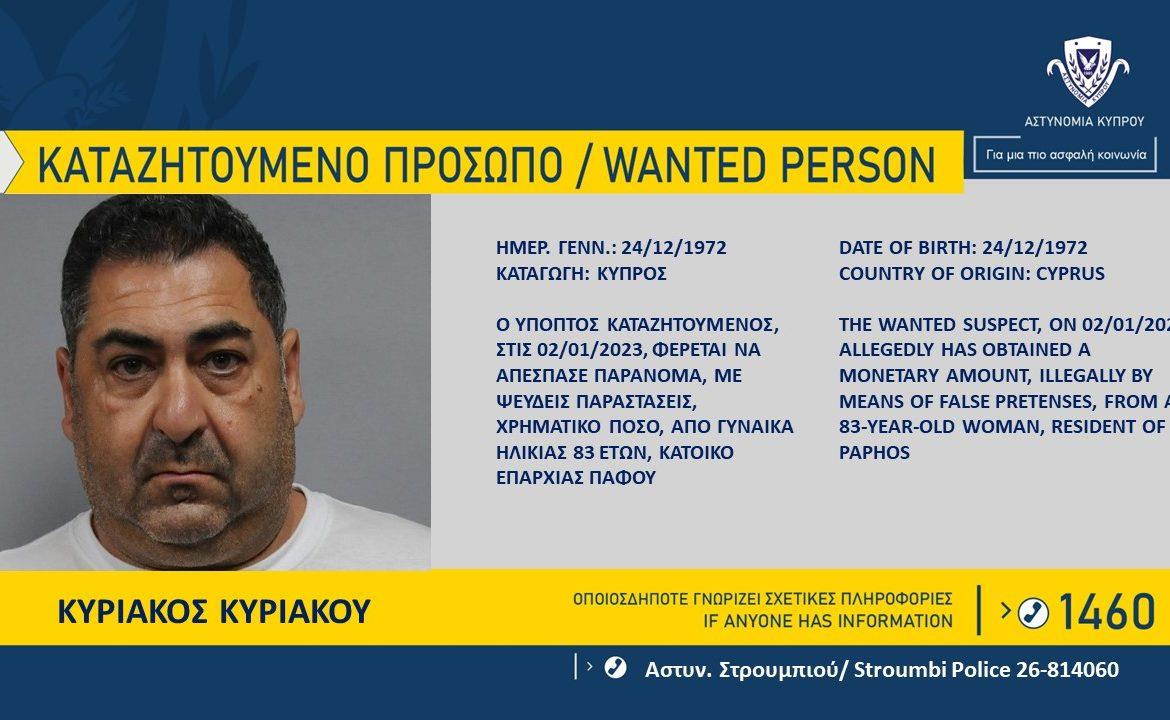 Καταζητείται ο Κυριάκος Κυριάκου-Απέσπασε χρήματα από 83χρονη (pic)