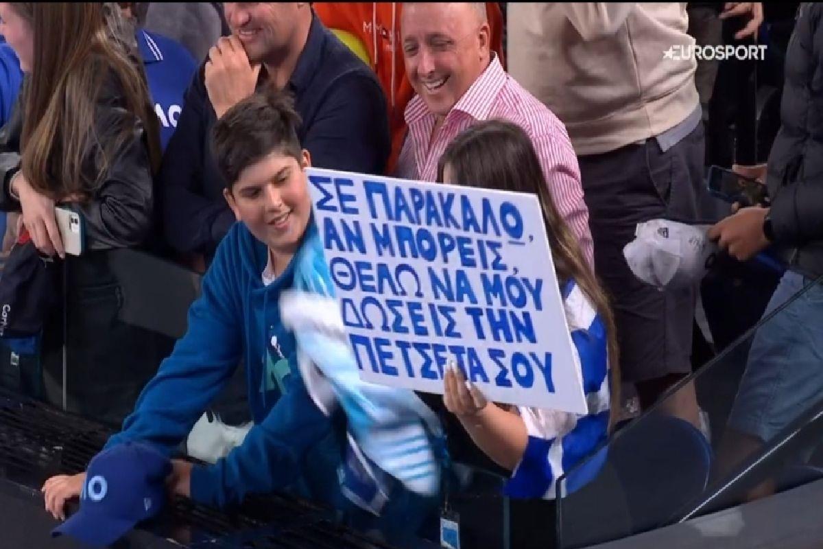 Η ελληνική παρουσία στις εξέδρες του αγώνα του Στέφανου Τσιτσιπά με τον Χιτζικάτα ήταν ξανά έντονη. Μάλιστα, ένα κοριτσάκι ήθελε να πάρει και ένα αναμνηστικό.
