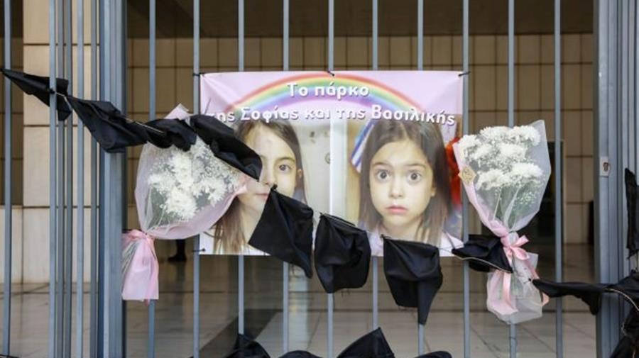 Μία μεγάλη φωτογραφία με τα πρόσωπα των δύο δίχρονων κοριτσιών, σε στιγμές χαράς και ανεμελιάς, γεμάτες φως, μέσα ένα ουράνιο τόξο και δίπλα μία ανθοδέσμη με λευκά λουλούδια, ακριβώς τοποθετημένη κάτω από τα μαύρα πανιά στα κάγκελα του Εφετείου … μαρτυρούσε την οδύνη και το θρήνο και στη διάρκεια της σημερινής δίκης για τη φονική πυρκαγιά στο Μάτι, που διεξήχθη σε μια αίθουσα με πάρα πολύ κόσμο , που βρέθηκαν στο πλευρό αυτών των γονιών.