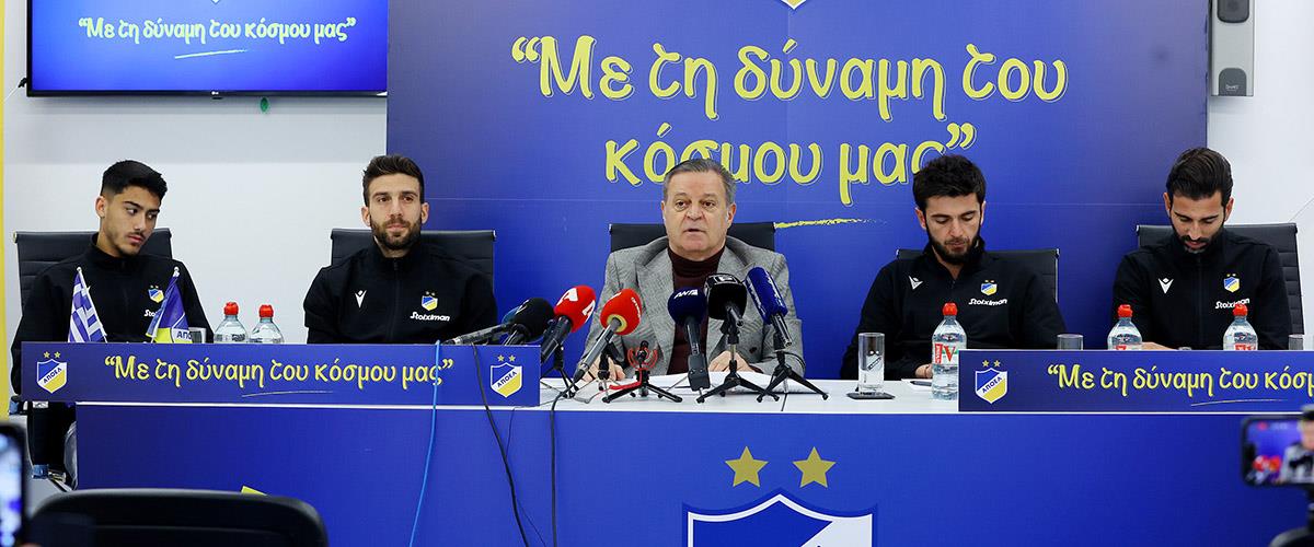 Ευχαριστούμε θερμά τον κόσμο μας που κάνει έδρα μας κάθε γήπεδο που αγωνιζόμαστε. Ευχαριστώ και το προπονητικό επιτελείο και τους ποδοσφαιριστές. Μας κάνουν περήφανους με την προσπάθεια τους. Είμαι πολλά χρόνια στο ποδόσφαιρο και στον ΑΠΟΕΛ. Το λέω και ανατριχιάζω ότι η φετινή ομάδα έχει το καλύτερο κλίμα. Εμείς θα είμαστε δίπλα τους. Κτυπώ ξύλο να συνεχίσουμε έτσι.