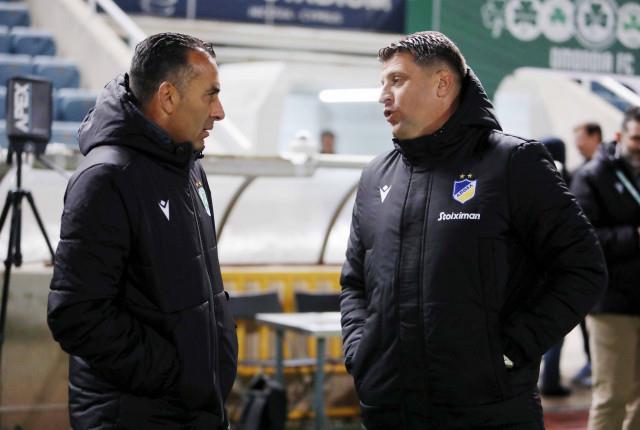 Συγκεκριμένα, ο τεχνικός της Ομόνοιας, Σωφρόνης Αυγουστή, συναντήθηκε με την πρώην του ομάδα και όπως ήταν αναμενόμενο, υπήρξαν αγκαλιές και αρκετά χαμόγελα με τους πρώην... φίλους τους.
