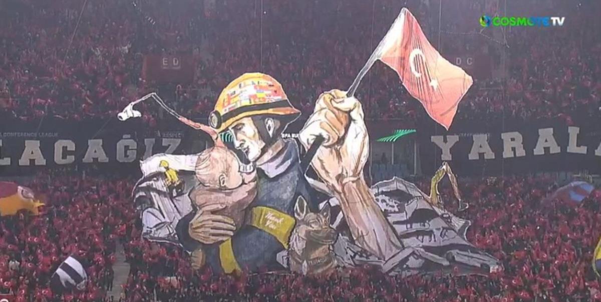 Ένα συγκλονιστικό κορεό σήκωσαν οι οπαδοί της τουρκικής ομάδας Τραμπζονσπόρ, αφιερωμένο στους διασώστες που βοήθησαν την Τουρκία μετά τον καταστροφικό σεισμό που άφησε πίσω του χιλιάδες νεκρούς.