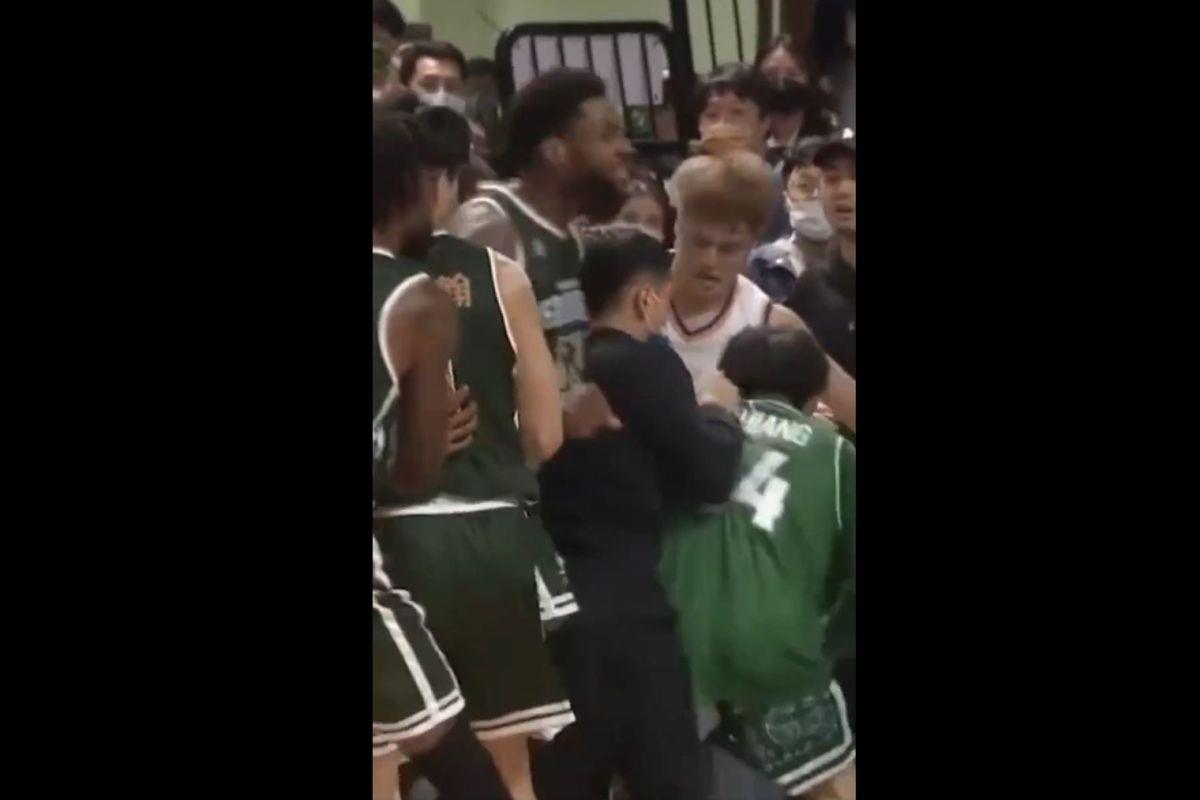 A brawl broke out in Taiwan's T1 League as Taoyuan Leopards guard Chen Hsiao-jung elbowed TaiwanBeer HeroBears guard Chiang Yu-an in the face.