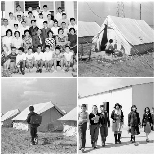 Μάθημα σε τάξη- αντίσκηνο  που στήθηκαν στους προσφυγικούς συνοικοισμούς το 1974.