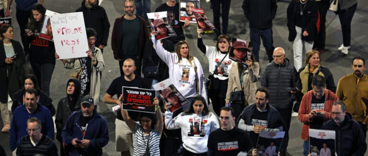 Το πλήθος επέκρινε την Κυβέρνηση του Πρωθυπουργού Βενιαμίν Νετανιάχου ότι δεν κάνει αρκετά για να απελευθερώσει τους ομήρους που απήγαγε η Χαμάς και κρατά στη Λωρίδα της Γάζας.