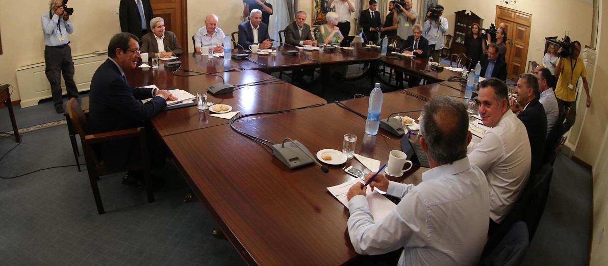Στο πλαίσιο της συνεδρίας, η οποία πραγματοποιήθηκε σε εποικοδομητικό κλίμα και χωρίς τις οξείες αντιπαραθέσεις των τελευταίων ημερών, ο Πρόεδρος της Δημοκρατίας προέβη σε αποτίμηση των εξελίξεων των τελευταίων 16 μηνών στο Κυπριακό και ειδικότερα επί του αποτελέσματος των οκτώ συναντήσεων που είχε κατά την εντατικοποιημένη φάση των διαπραγματεύσεων με τον Τουρκοκύπριο ηγέτη Μουσταφά Ακιντζί, η οποία ολοκληρώθηκε σήμερα. Συναφώς, ο Πρόεδρος της Δημοκρατίας ανέγνωσε 53σέλιδο έγγραφο με τις συγκλίσεις και τις αποκλίσεις σε όλα τα κεφάλαια του Κυπριακού, απαντώντας στις διευκρινιστικές ερωτήσεις που τέθηκαν από τους αρχηγούς των κομμάτων. Οι ηγέτες των κομμάτων τοποθετήθηκαν και οι ίδιοι στα σημεία που περιλαμβάνονται στο πολυσέλιδο έγγραφο, με κάποιες από αυτές να διατυπώνουν έντονους προβληματισμούς και επιφυλάξεις.