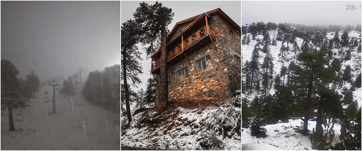 Eντυπωσιακές είναι οι εικόνες από το Τρόοδος, λόγω της πτώσης χιονιών, καθόλη τη διάρκεια της νύχτας, που έντυσε την οροσειρά στα λευκά.