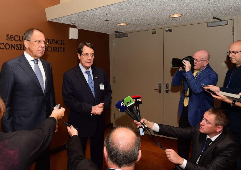 Σε δηλώσεις του μετά την ολοκλήρωση της συνομιλίας, που διήρκεσε περίπου 25 λεπτά, ο Πρόεδρος Αναστασιάδης είπε ότι «η συνάντηση εντάσσεται στις επαφές που αυτές τις μέρες πραγματοποιούμε στα Ηνωμένα Έθνη προκειμένου να ενημερώσουμε για την παρούσα κατάσταση πραγμάτων, αλλά και ταυτόχρονα για τις προοπτικές και την ανάγκη συνέχισης, ιδιαίτερα από τη Ρωσική Ομοσπονδία, της συμπαράστασης και οπωσδήποτε συμβολής στη μεγάλη προσπάθεια που καταβάλλουμε. Από πλευράς του Ρώσου Υπουργού Εξωτερικών υπήρξε πλήρης κατανόηση ενώ ταυτόχρονα είχαμε την ευκαιρία να ανταλλάξουμε απόψεις για κάποια διμερή θέματα κοινού ενδιαφέροντος».