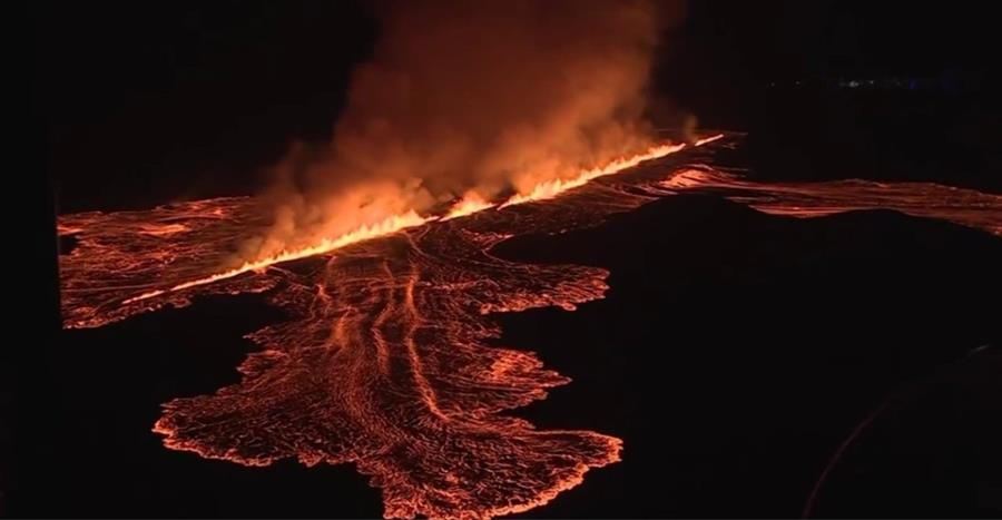 Βίντεο που αναμεταδίδεται απευθείας δείχνει λάβα να αναβλύζει από μακρύ ρήγμα, το μέγεθος του οποίου δεν έχει προσδιοριστεί σε αυτό το στάδιο.