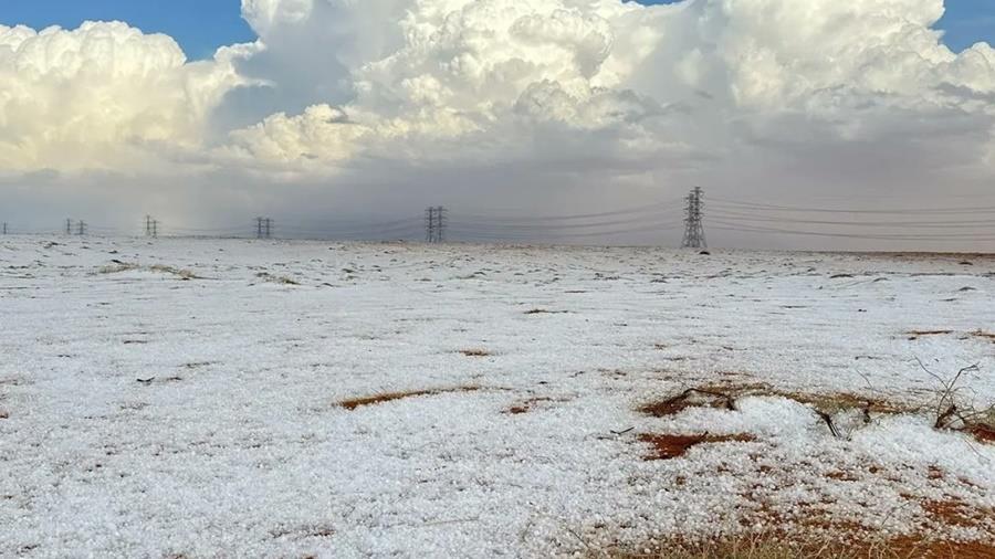 Ένα σπάνιο καιρικό φαινόμενο έπληξε τη Σαουδική Αραβία τις προηγούμενες ημέρες, καθώς η περιφέρεια Al-Jawf στα βόρεια της χώρας, «ντύθηκε στα λευκά» λόγω χιονόπτωσης, που προκλήθηκε από έντονη βροχή και χαλάζι.