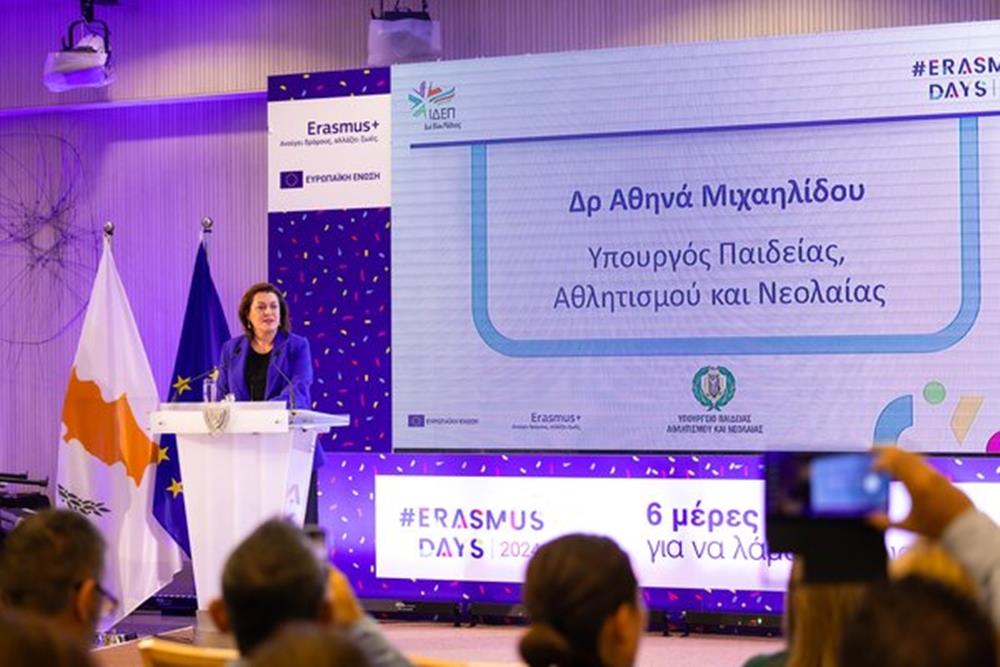 Το Πρόγραμμα Erasmus+ είναι ένα από το πιο εμβληματικά προγράμματα της Ευρωπαϊκής Επιτροπής στους τομείς της Εκπαίδευσης, της Κατάρτισης, της Νεολαίας, και του Αθλητισμού και από τα σημαντικότερα επιτεύγματά της, είπε, σε χθεσινοβραδινό χαιρετισμό της στην τελετή έναρξης των εορτασμών των Ημέρες Erasmus 2024, η Υπουργός Παιδείας, Αθλητισμού και Νεολαίας, Αθηνά Μιχαηλίδου.