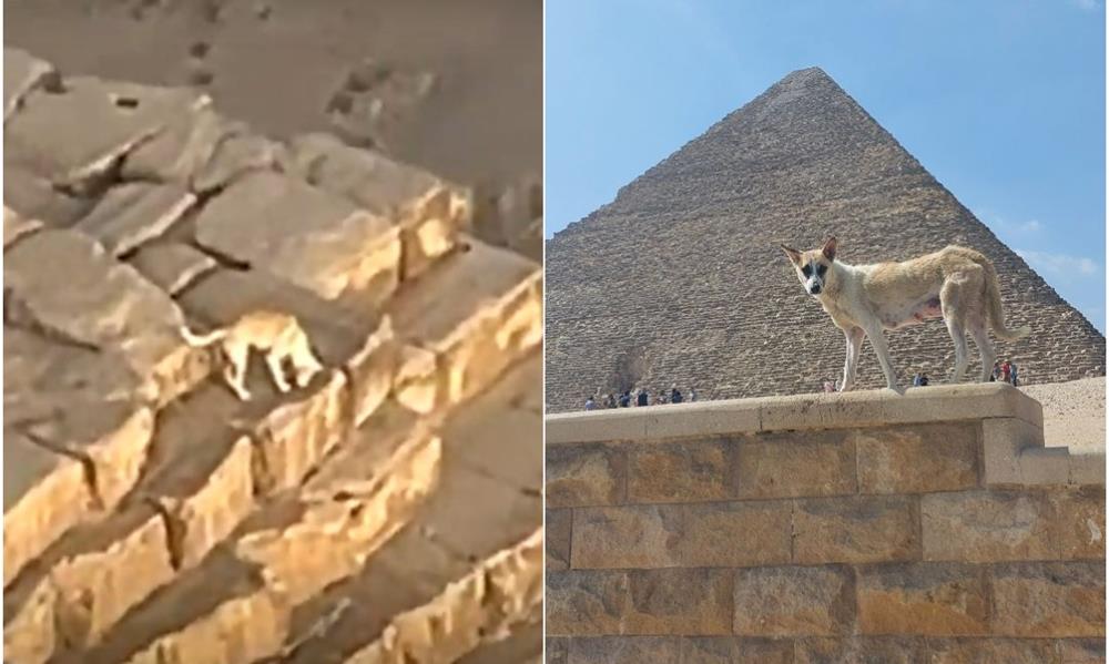 Ο ξανθός σκύλος που απεικονίζεται στα πλάνα είχε καταφέρει το ακατόρθωτο: να σκαρφαλώσει σε ύψος 147 μέτρων και να αγναντεύει τη θέα από ψηλά, έχοντας κατακτήσει την κορυφή της πυραμίδας του Χέοπα, της μεγαλύτερης και αρχαιότερης από τις πυραμίδες της Νεκρόπολης της Γκίζας.